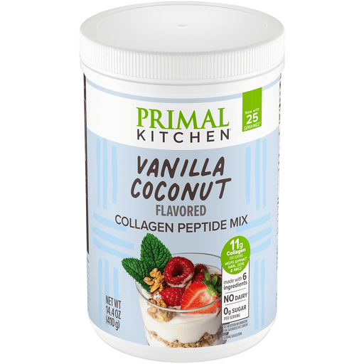 Simply sip for hair, skin, and nail support! Collagen is one of the most abundant proteins in the body, but natural collagen production declines as we age. We can’t stop the clock, but with PRIMAL KITCHEN(™) COLLAGEN FUEL® Vanilla Drink Mix, you can add a delicious collagen kick to your routine! Made with 11g of type collagen peptides and without refined sugar, dairy, whey, or soy ingredients, PRIMAL KITCHEN COLLAGEN FUEL drink mix is Keto Certified and Paleo Friendly. Enjoy this powder in smoothies, coffee, or plain—shaken, stirred, blended. It’s quick, easy, and with creamy coconut milk powder and dreamy vanilla flavor, it’s also totally uncompromisingly delicious.
